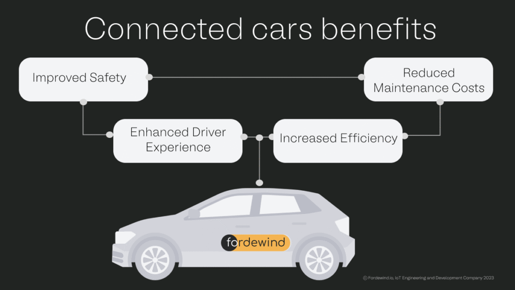 Moreover, connected cars offer a wide range of benefits for both drivers and manufacturers. Here are just a few of the advantages of IoT-enabled vehicles: